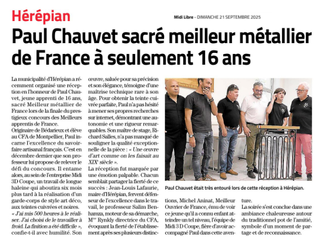 Hérépian : Paul Chauvet sacré meilleur métallier de France à seulement 16 ans
