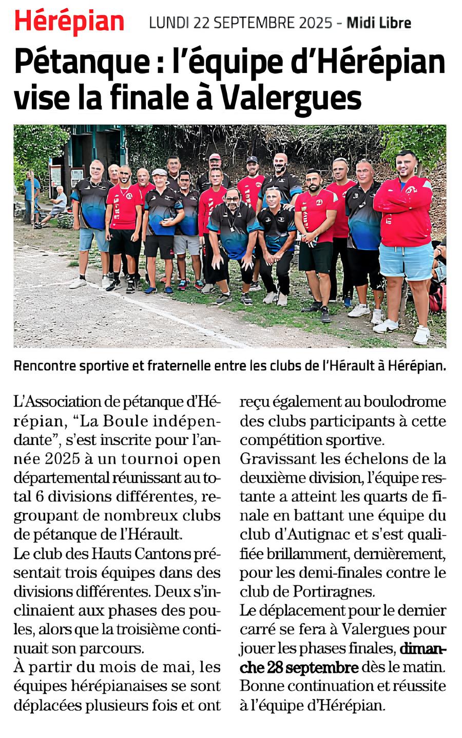 Hérépian : Pétanque : l'équipe d"Hérépian vise la finale à Valergues