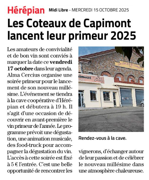 Hérépian : Les coteaux de Capimont lancent leur primeur 2025