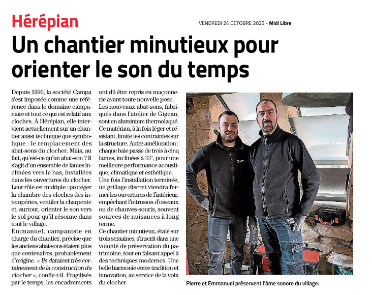 Hérépian : Un chantier minutieux pour orienter le son du temps