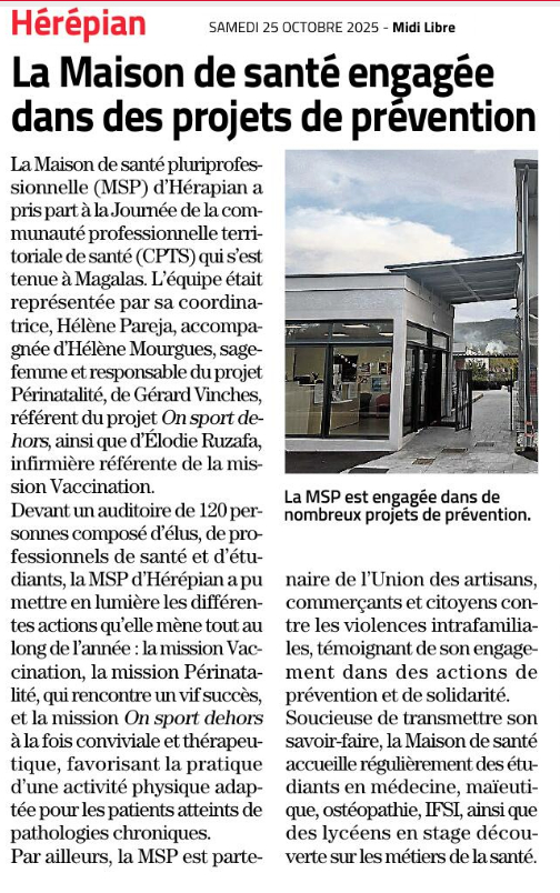 Hérépian : La maison de santé engagée dans des projets de prévention