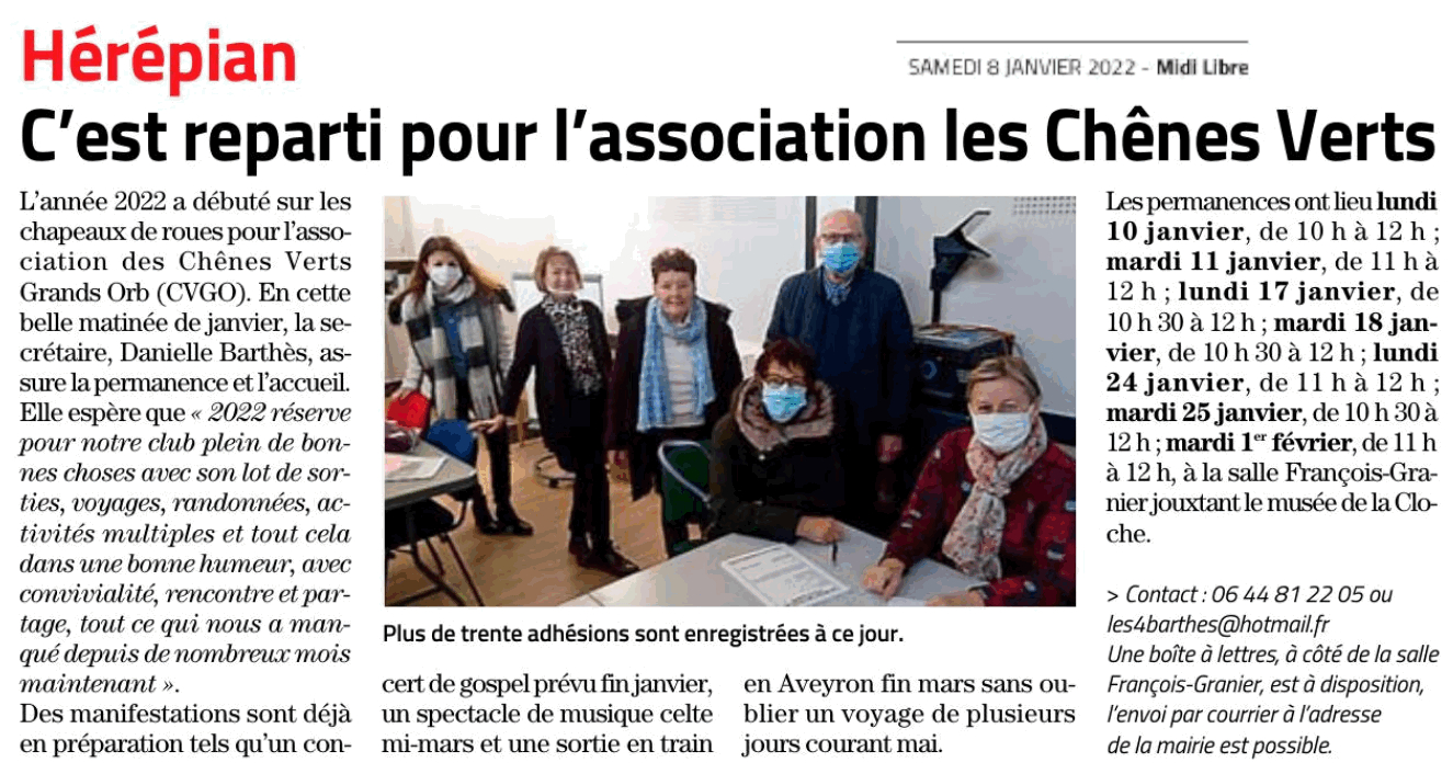 Hérépian C'est reparti pour l'association les Chênes Verts