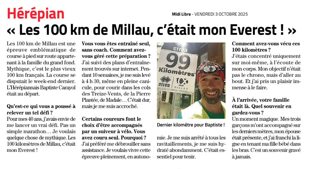 Hérépian : "Les 100 km de Millau, c'était mon Éverest !"