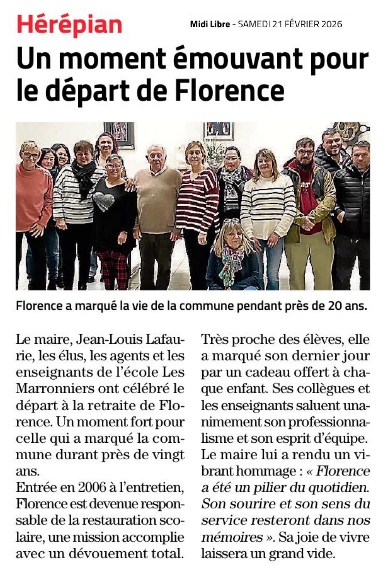 Hérépian : Un moment émouvant pour le départ de Florence